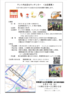テント出店、キッチンカー出店をされる方を、先着順で募集します。