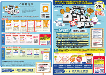 今回は、プレミアム率が「20%」となっており、10,000円で12,000円分の商品券(共通券と中小店専用券がそれぞれ6,000円ずつ)をご購入いただけます。ぜひご検討下さい。
